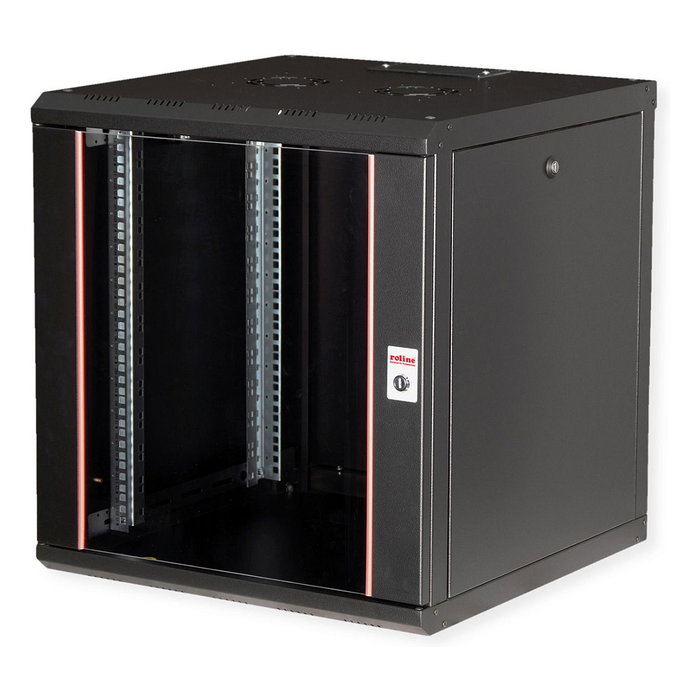 ROLINE 26.21.0005 Bastidor de Pared 19 Pulgadas 12U 600x600 mm Negro - Rack con Puerta de Cristal, Bloqueo y Guías