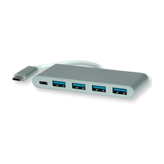ROLINE Hub USB 3.2 Gen 1 (14.02.5061) con 4 puertos Tipo A, 1 puerto Tipo C PD y cable Tipo C, Plata, hasta 5000 Mbit/s