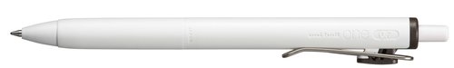Bolígrafo Uni One con cuerpo de color blanco e indicador de color en la parte superior del bolígrafo, que facilita la identificación del color de la tinta. Una revolucionaria tinta de gel con pigmentos nítidos e intensos formulada para disfrutar de una escritura clara, sin manchas, ni sangrado, y un ancho de bola de 0.7 mm, para trazados de 0.4 mm. Un elegante diseño con resistente clip de alambre abierto, que proporciona una fácil sujeción en carpetas, cuadernos o portapapeles.
