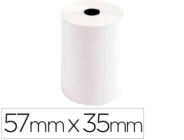 Rollo de sumadora Térmico. 57 mm ancho y diametro 35 mm (18 metros). Certificado FSC. Economico. Para TPV (Terminales de pago Visa). SIN BPA.