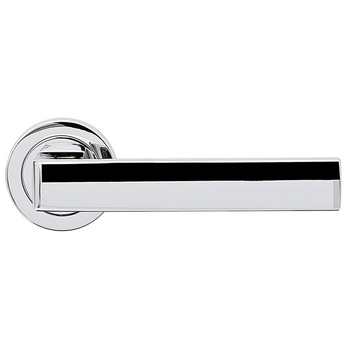 Manilla con roseta redonda en acabado cromo.
