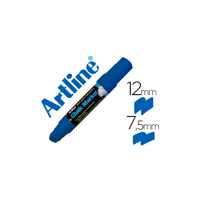 Artline Rotulador Pizarra EPW-12 mm para Pizarras Negras y Verdes, Cristal, Plástico. Uso Exterior/Interior. Trazo 12 mm. Color Azul.