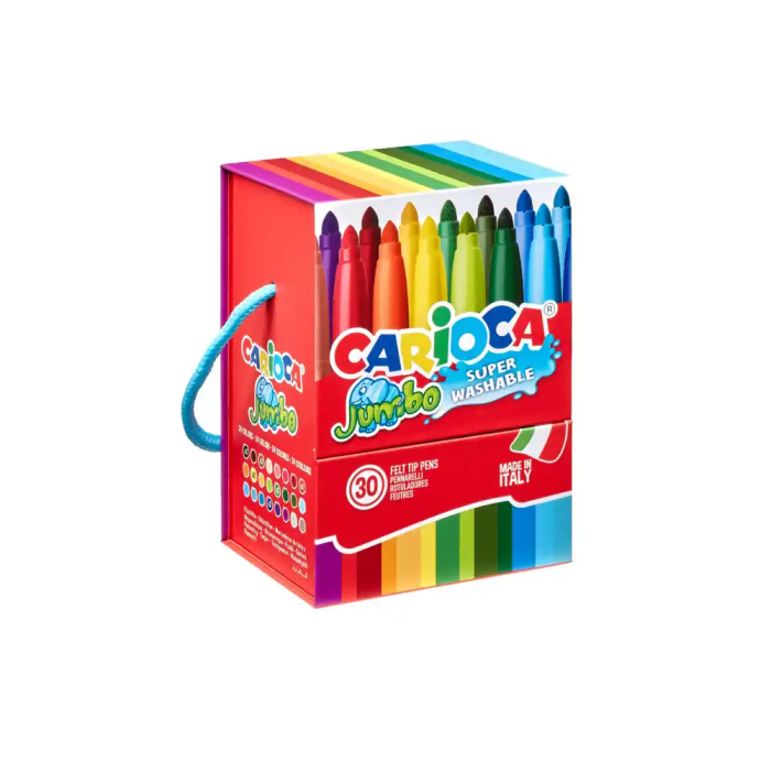 Carioca Rotuladores Jumbo Caja Premium con Asa 30 Unidades Colores Surtidos Tinta Superlavable Cuerpo Octogonal Maxi Punta Ø 6 mm Hasta 10 Horas Abierto