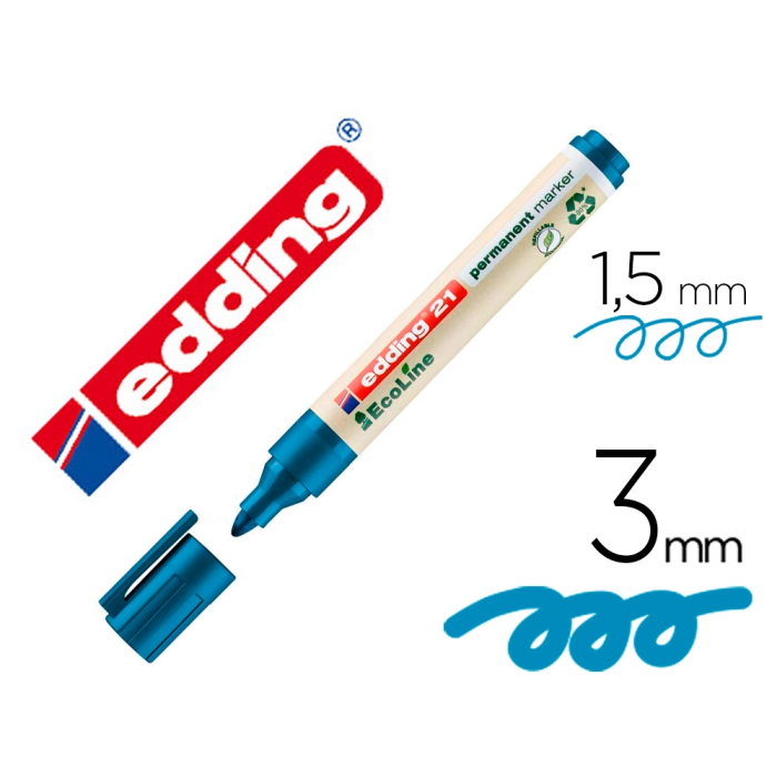Edding 21 Marcador Permanente Ecoline Azul Punta Redonda 1,5-3 mm Recargable 90% Reciclado
