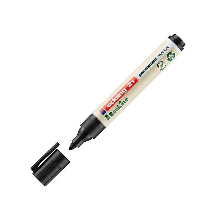 Edding Marcador Permanente 21 Ecoline Negro (Set de 10) - Marcador Ecológico Recargable con Punta Redonda 1.5-3mm, Resistente al Agua (Set de 10)