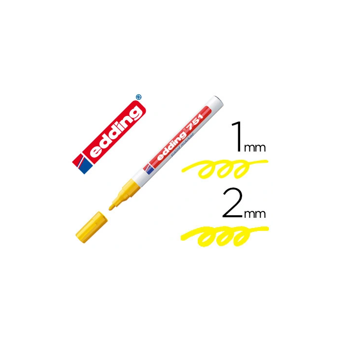 Edding 751 Rotulador Punta Fibra Amarillo Punta Redonda 1-2 mm Tinta Permanente Opaca Ideal Madera Vidrio Plástico Metal