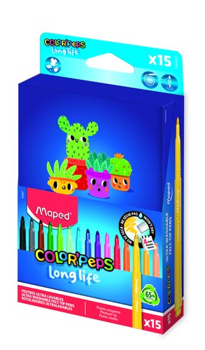 Rotulador Fibra Maped Color´Peps Long Life Ultralavable Estuche Regalo De 15