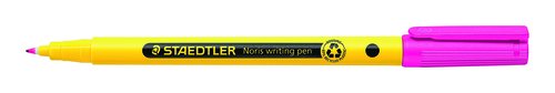 Noris® writing pen es un fineliner con cuerpo en colores amarillo y negro y capuchón indicativo del color de la tinta. Carcasa fabricada en un 97% de plástico reciclado (cuerpo, capuchón y embellecedor) según ISO 14021. Punta F antisecado DRY SAFE resistente a la presión (aprox. 0,6mm). Lavable sobre la mayoría de los tejidos.