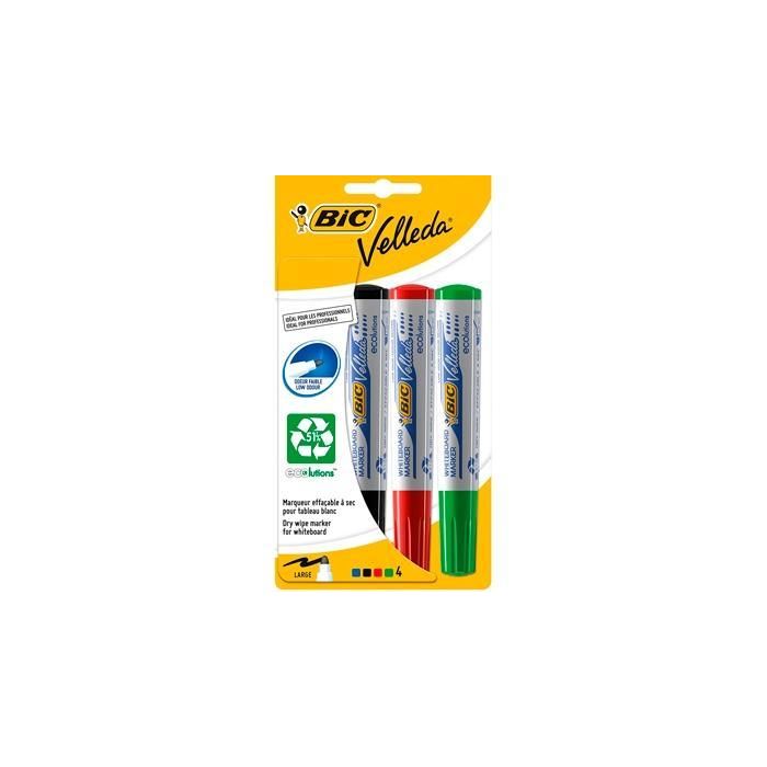 Velleda Marcadores Pizarra Blanca 1701 Ppunta Redonda, Punta Cónica 1.5mm, Tinta Alcohol Baja Intensidad Olor, Blíster 4 Unidades Colores Surtidos