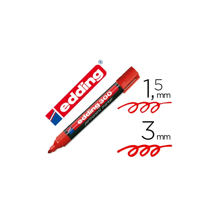 Edding Marcador Permanente 300 Rojo Tinta Resistente Ideal para Diversos Materiales Papel Plástico Vidrio