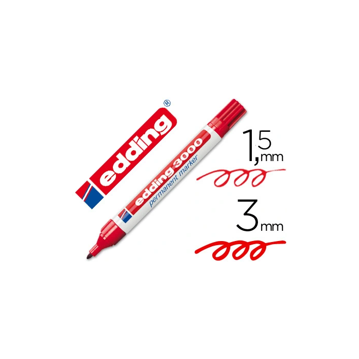 Edding Marcador Permanente 3000 Rojo (Set de 10) - Marcador de tinta indeleble para múltiples superficies, grosor de trazo 1.5-3mm, resistente al agua y roce. (Set de 10)