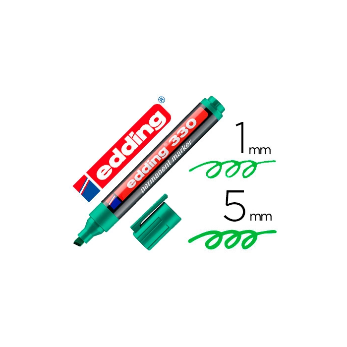 Edding Marcador Permanente 330 Punta Biselada Verde, Marcador para casi todos los materiales