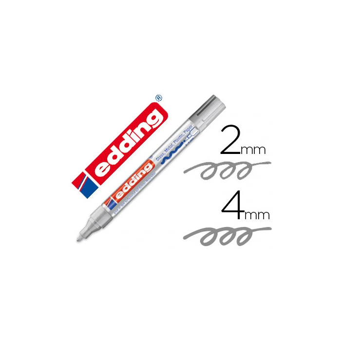 Edding Rotulador 750 Punta Fibra Plata Punta Redonda 2-4 mm Marcador Permanente Opaco