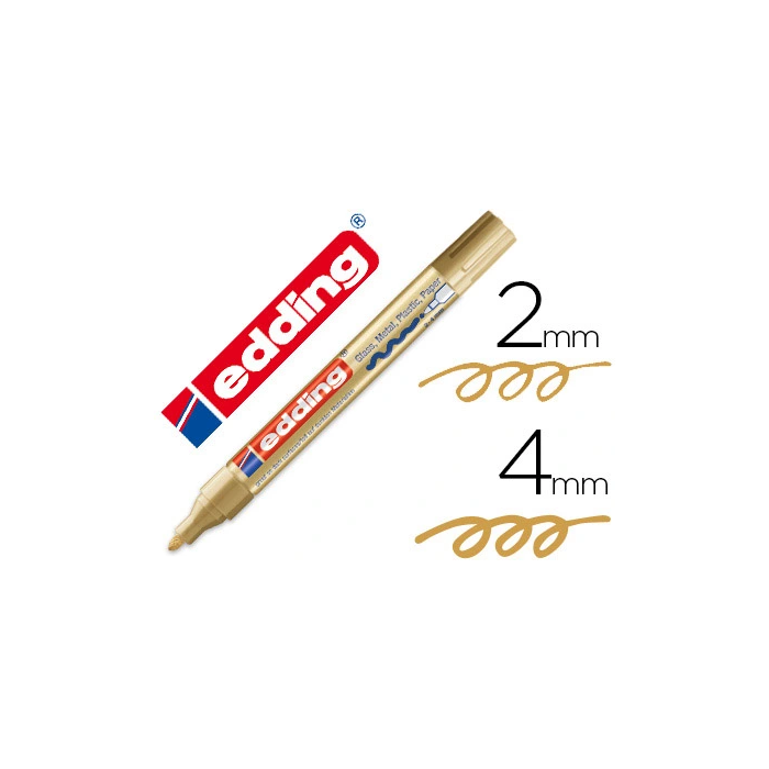 Edding Rotulador 750 Marcador Punta Fibra Oro Tinta Opaca Permanente Efecto Lacado para Madera Vidrio Plástico Metal Trazo 2-4 mm