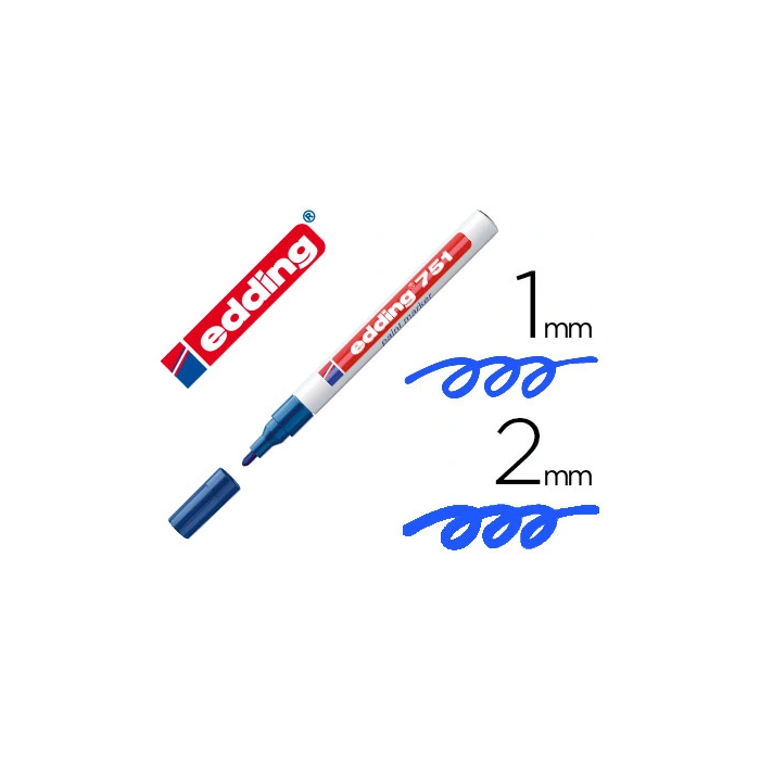 Edding Marcador Permanente 751 Tinta Opaca Brillante Azul Punta Redonda 1-2 mm