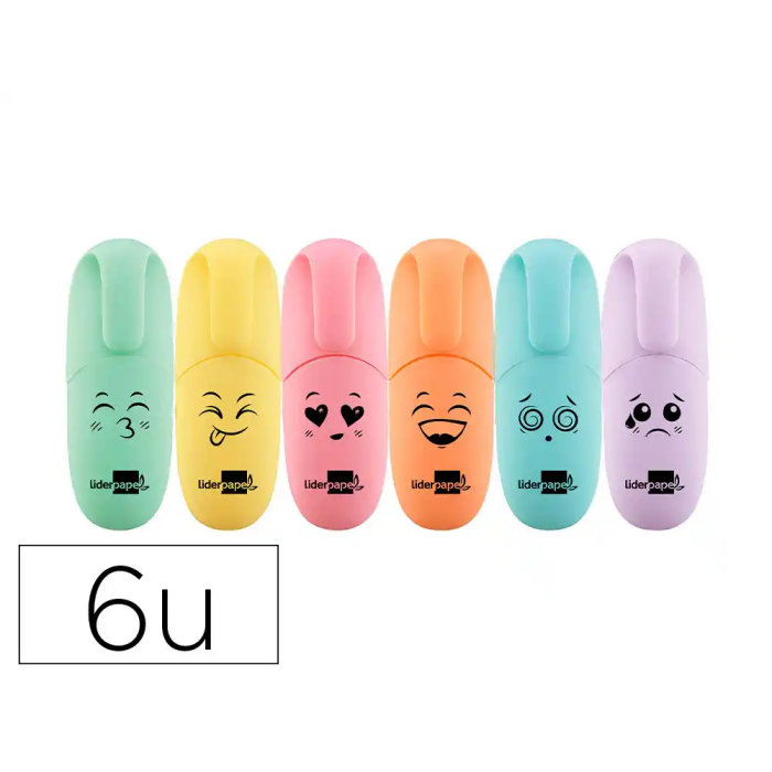 Liderpapel Rotulador Mini Fluorescente Pastel Punta Biselada Estuche 6 Unidades Colores Surtidos Trazo 1-4 mm