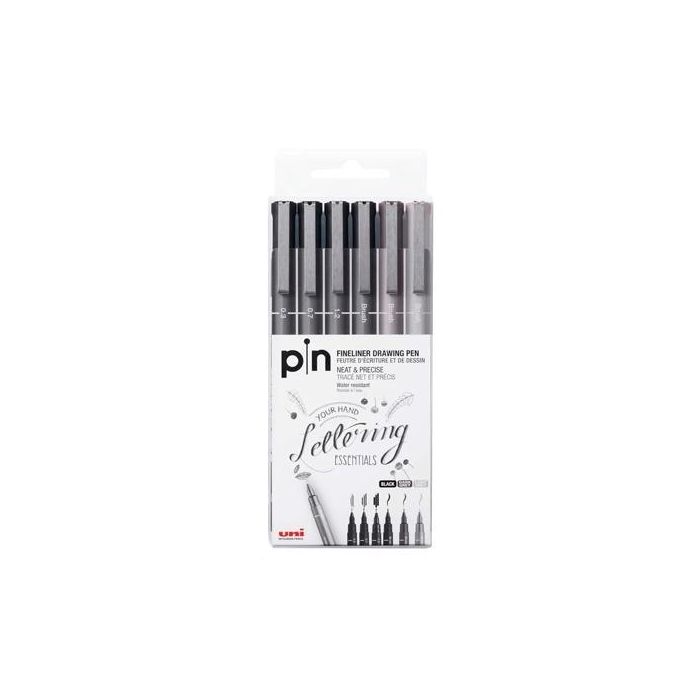 Uni-Ball Rotulador Calibrado Pin-200S-6P Surtido Gris & Negro Estuche 6 Ud