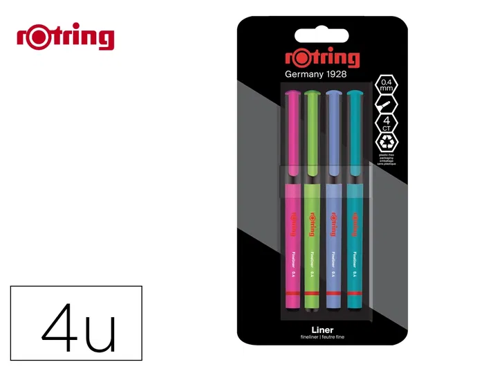 Rotulador rotring fineliner punta metalica 0,4 mm pack de 4 colores surtidos