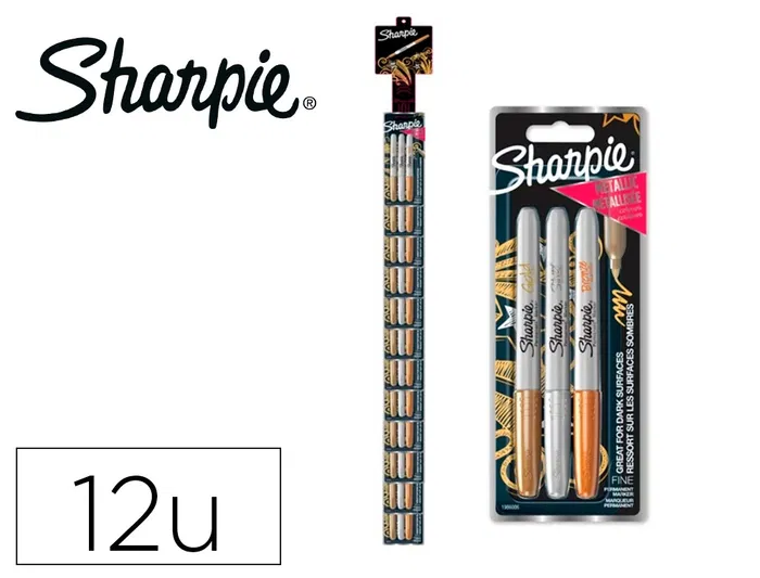 Sharpie Rotulador Permanente Fino Metálico Oro/Plata/Bronce Blister 3 Unidades Clipstrip 12 Blister