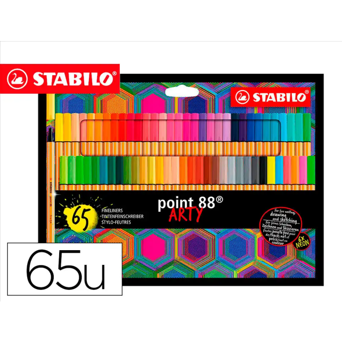 Stabilo Rotulador Point 88 Punta de Fibra Arty Line, Estuche de 65 Unidades, Colores Surtidos, Trazo 0.4 mm