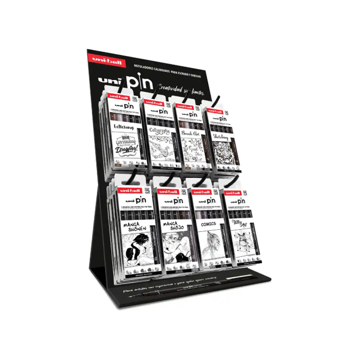 Uniball PIN Rotulador Calibrado, Tinta Pigmentada Resistente al Agua, Expositor de 32 Blisters Surtidos
