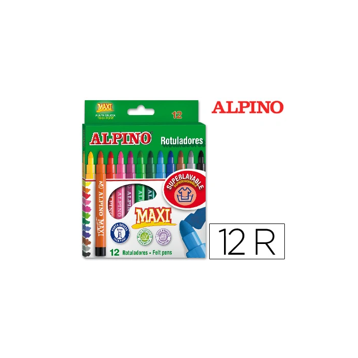 Alpino Rotuladores Maxi Punta Gruesa Estuche De 12 Colores Surtidos