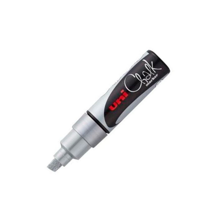 Uni-Ball Marcador Tiza Líquida Chalk PWE-8K Punta Biselada Plata Caja 6 Unidades