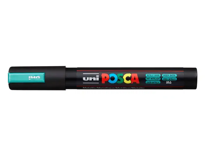 Marcador de pintura no permanente, base agua. No es tóxico Punta en forma de bala de poliéster PC5M de 1,8mm - 2,5mm Pinta sobre cualquier superficie: metal , vidrio, plástico, piedra, tela, terracota, porcelana y muchos más Color opaco: dejar secar después de la aplicación y la nueva cap de pintura, cubrirá completamente el color anteiror. Verde metálico