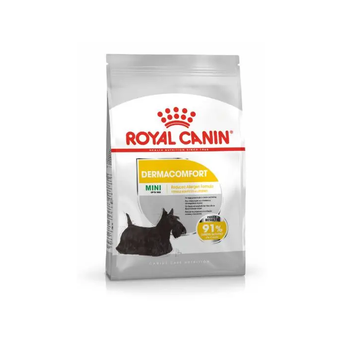 Alimento completo para perros adultos de razas mini con piel sensible. Royal Canin Adult Dermacomfort Mini está formulado con nutrientes específicos para ayudar a mantener la salud de la piel y reducir la irritación en perros de tamaño pequeño. Su fórmula de alta digestibilidad asegura una óptima absorción de nutrientes.