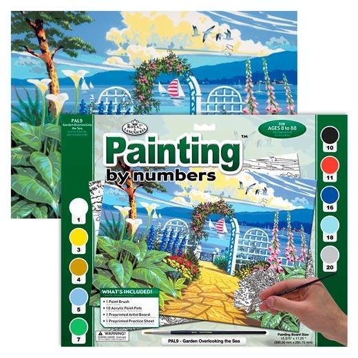 Royal Langnickel Pintura por Números Adultos Grande "Jardín Con Vistas Al Mar" - Kit Completo de Pintura Acrílica