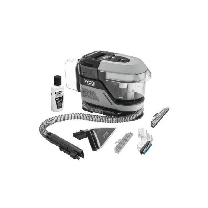 Elimine las manchas incrustadas con el limpiador de tapicerías sin escobillas Swift Clean ONE+™ de RYOBI® Es ideal para eliminar manchas incrustadas en tejidos domésticos y de automoción. Gracias a la manguera flexible y a los múltiples accesorios incluidos, podrá eliminar manchas y derrames en cualquier ángulo con facilidad y conseguir resultados impresionantes.