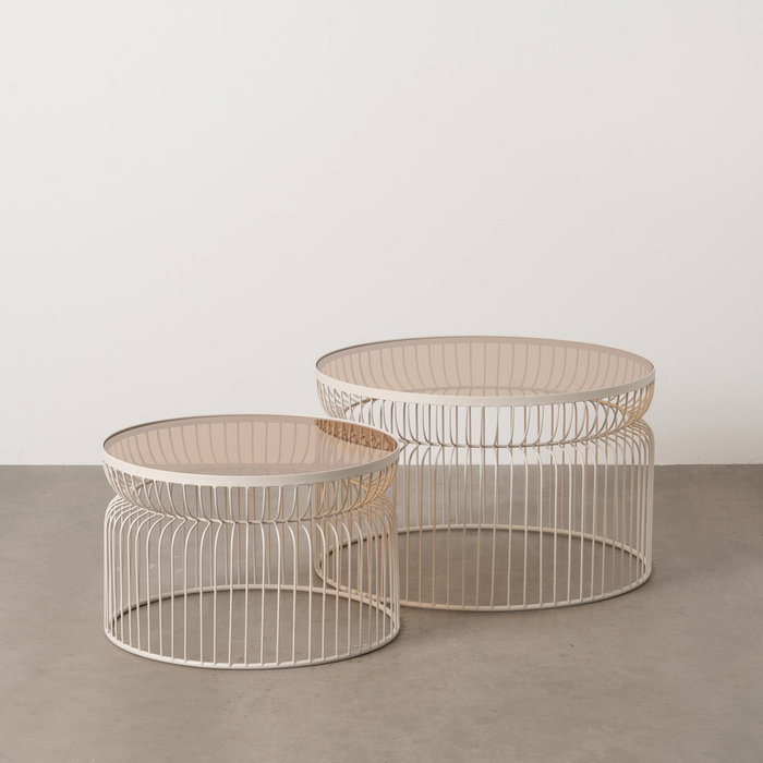 S/2 Mesa Centro Crema Metal-Cristal 65 X 65 X 40 cm