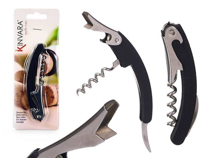 Kinvara Sacacorchos Cromado Negro 64 g, Metal, Dimensiones: 11x11x2.5 cm (Set de 36)