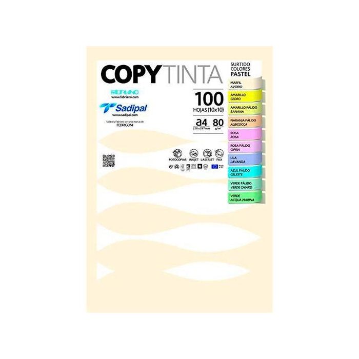Sadipal Papel Copytinta A4 80 gr Inkjet-Láser, Paquete 100H, Colores Surtidos Pastel