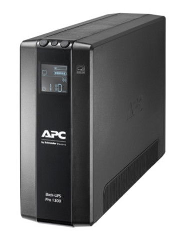 APC BR1300MI. Topología UPS: Línea interactiva, Capacidad de potencia de salida (VA): 1,3 kVA, Potencia de salida: 780 W. Tipo de salida AC: C13 acoplador, Conector: C14 acoplador, Cantidad de salidas AC: 8 salidas AC. Tecnología de batería: Sealed Lead Acid (VRLA), Vida útil de la batería (máx.): 5 año(s), Tiempo de recarga de la batería: 16 h. Factor de forma: Torre, Color del producto: Negro, Longitud de cable: 1,83 m. Ancho: 250 mm, Profundidad: 382 mm, Altura: 100 mm