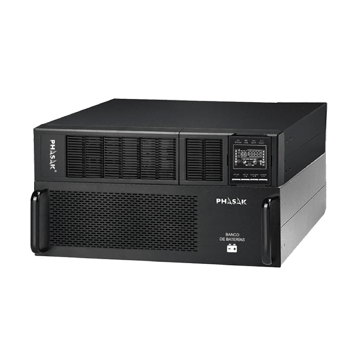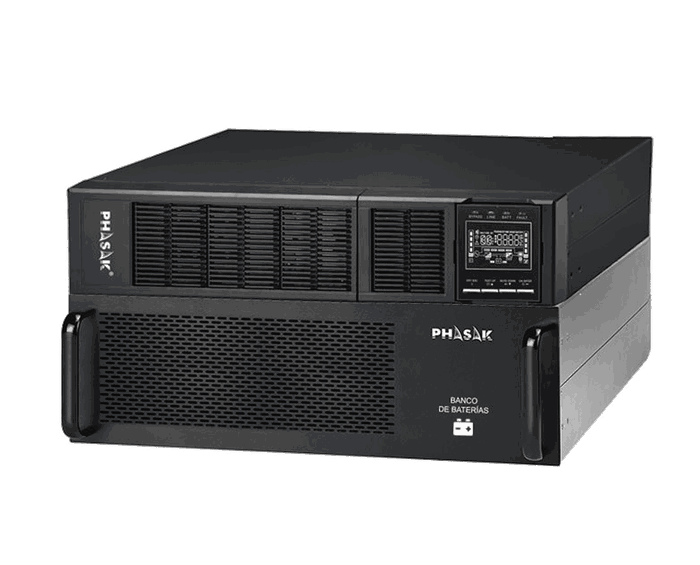 La serie Phasak Online incorpora tecnología online de doble conversión real monofásico, y permite la instalación de bancos de baterías externos en todas sus referencias. Cuenta con tomas RJ45