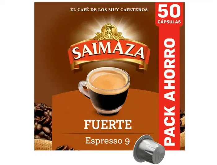 Saimaza Café Fuerte Espresso Intensidad 9 Caja 50 Cápsulas Compatible Nespresso
