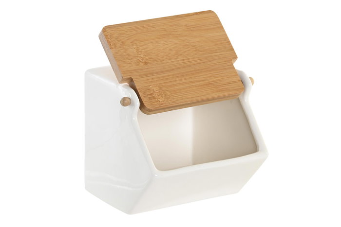 DKD Home Decor Salero de Porcelana y Bambú Blanco Natural 14 x 12.5 x 12 cm