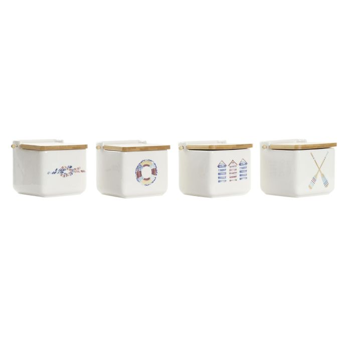 DKD Home Decor Salero Mediterraneo Dolomita Bambu Multicolor 4 Unidades 12.5 x 11.5 x 12.5 cm