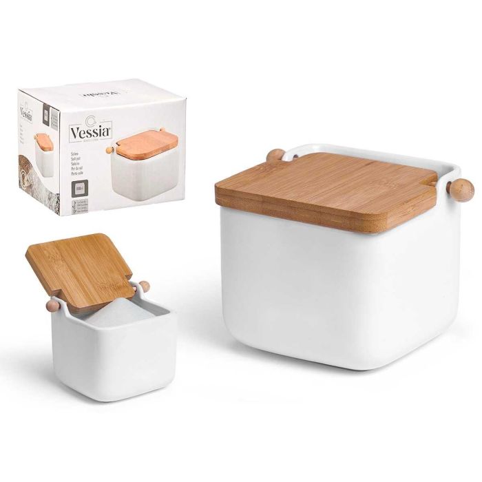 Vessia Salero Cerámica Blanco Tapa Bambú 14,5x11x11,5 cm 800 ml (Set de 6)