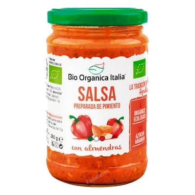 Pimientos* 68%, QUESO* Pecorino 8% (LECHE*, sal, cuajo), aceite de girasol* 6%, ALMENDRAS* 6%, cebolla*, aceite de oliva virgen extra*, albahaca*,vinagre de manzana*, mejorana*, ajo*,pimentón*.