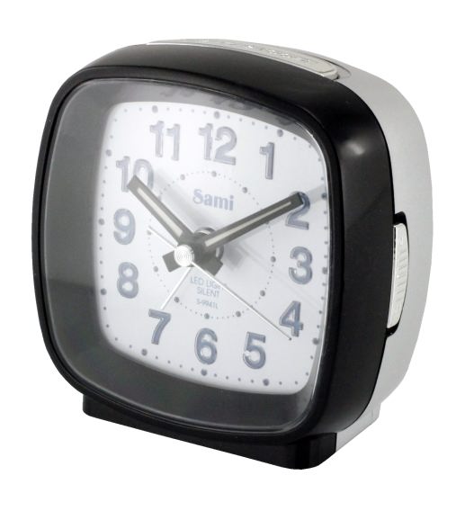 SAMI Despertador Cuadrado Mediano Silencioso con Luz LED Azul y Negro