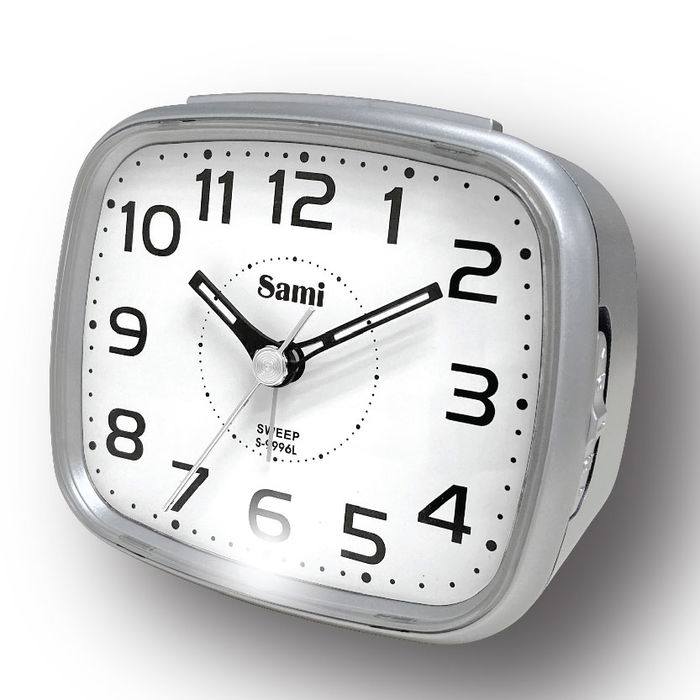 Despertador Sami mediano esfera blanca con números luz superled plata. Disfruta de un despertador confiable que combina un diseño clásico y moderno con números grandes para una fácil lectura. La esfera blanca contrasta con los detalles en plata, y la luz LED ofrece una excelente visibilidad incluso en la oscuridad, ayudándote a comenzar tu día puntualmente. Marca: Sami.