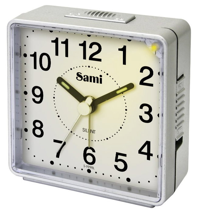 Despertador Sami Mini, un reloj despertador compacto con funciones prácticas para un despertar suave. Incluye luz de fondo para ver la hora en la oscuridad, función de repetición de alarma (snooze) y modo silencioso para una alarma más discreta. Ideal para dormitorios, mesitas de noche o viajes gracias a su diseño mini. Marca: SAMI.