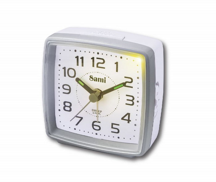 Despertador Sami con pantalla pequeña, luz, sonido y función de volumen creciente silenciosa. Marca: SAMI. Perfecto para comenzar tu día con suavidad.
