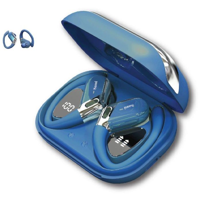 SAMI JOGGER Auriculares Bluetooth TWS con Aro Silicona Azul y Pantalla LCD, Resistente al Agua y al Polvo para Día a Día