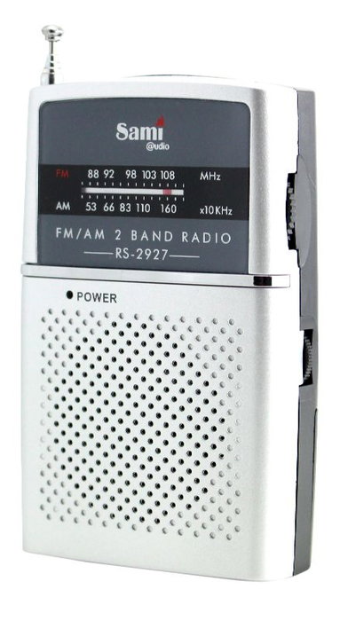 Radio Sami de dos bandas con diseño vertical y auriculares incluidos. Ideal para disfrutar de tu música y emisoras favoritas con gran calidad de sonido. Fabricada por la marca Sami, reconocida por su fiabilidad.