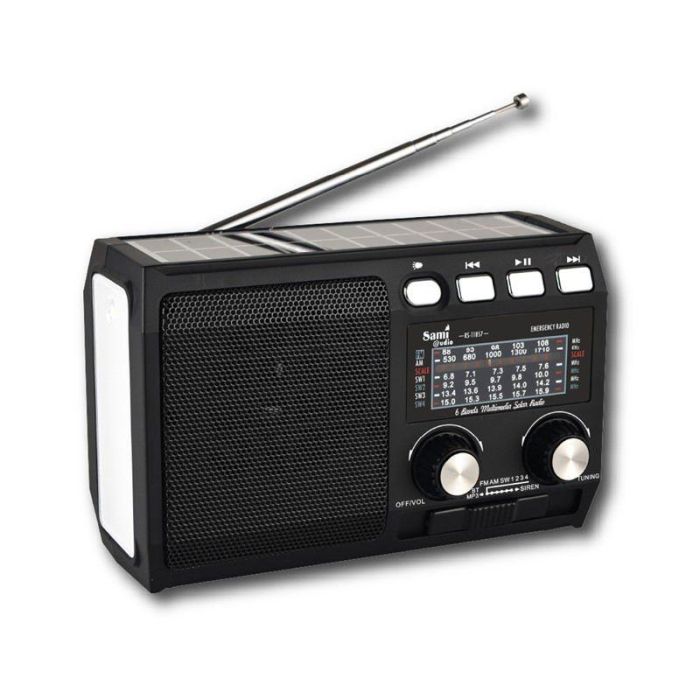 Descubre la Radio Sami de Emergencia multimedia, un dispositivo esencial para cualquier situación de emergencia. Diseñado por la reconocida marca SAMI, esta radio ofrece 6 bandas de recepción para mantenerte informado en todo momento. Su funcionalidad de batería y energía solar garantiza que nunca te quedes sin comunicación, incluso en las condiciones más adversas. Perfecta para acampadas, excursiones o como parte de tu kit de preparación para emergencias, la Radio Sami es tu compañera confiable para recibir información vital y entretenimiento. Compacta y duradera, está lista para funcionar cuando más la necesitas.