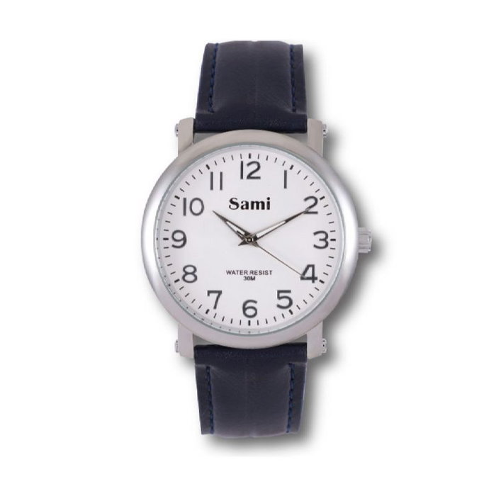 El reloj SAMI para hombre presenta un diseño redondo elegante y un cierre tipo mariposa para una colocación segura y cómoda. Fabricado con correa de piel, combina estilo clásico y funcionalidad.