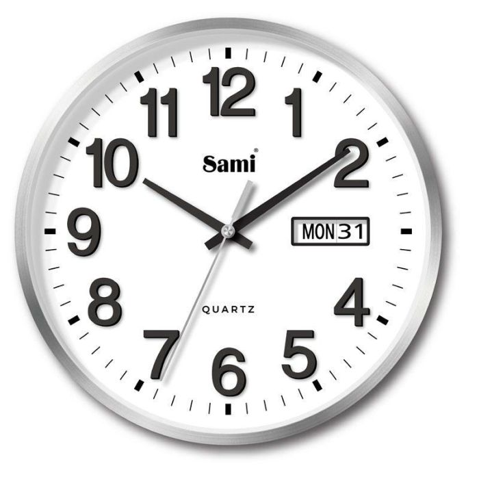 SAMI Reloj de Pared HQ TAIWAN de 30 cm de Aluminio con Calendario Día/Mes Red